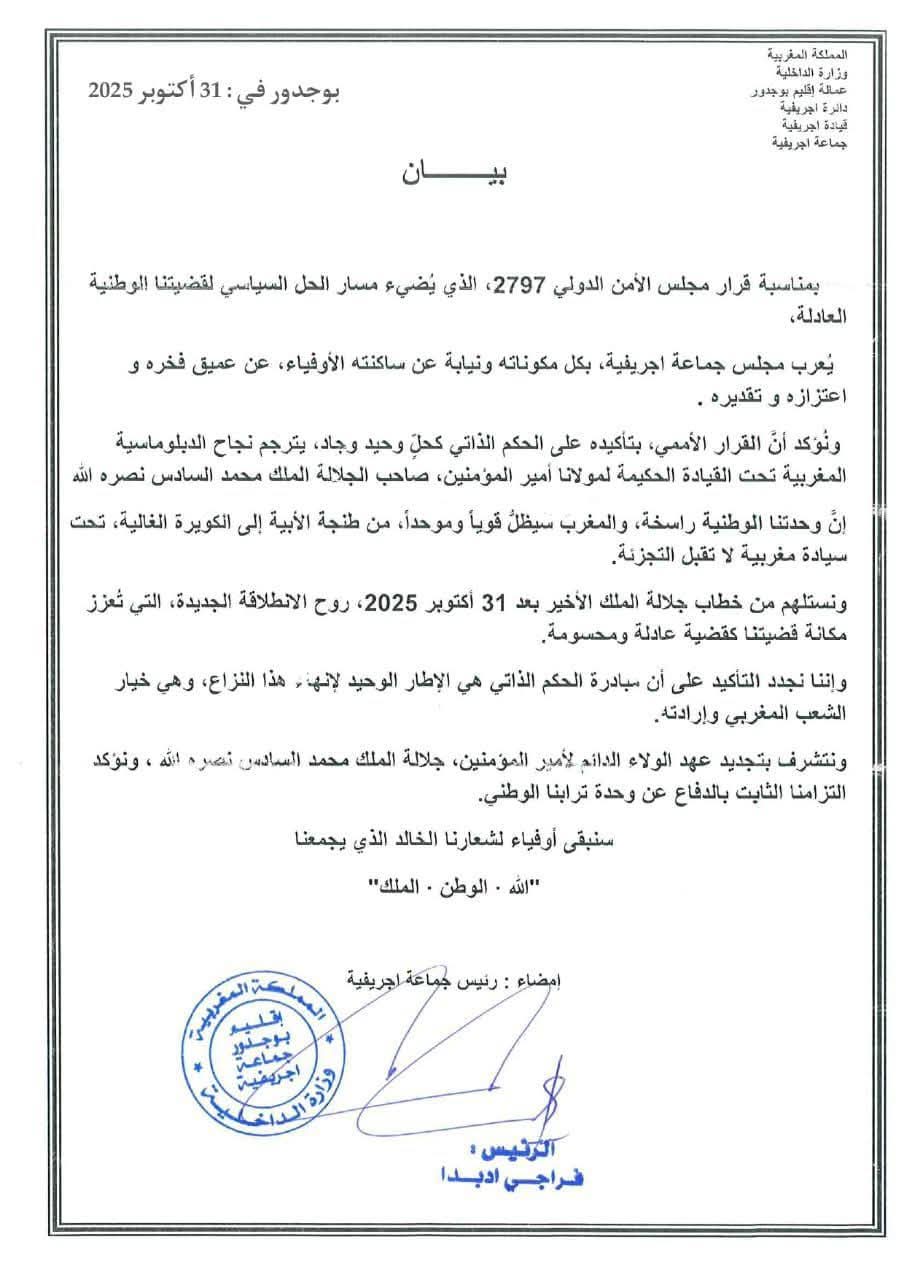 متابعة : رحال الأنصاري بوجدور – 03 يونيو 2025 في تطور دبلوماسي وصف بـ”الاستراتيجي والتاريخي”، عبّر رئيس جماعة بوجدور، السيد…