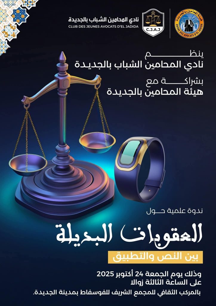 ينظم نادي المحامين الشباب بالجديدة بشراكة مع هيئة المحامين بالجديدة ، ندوة علمية هامة حول موضوع:
