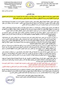 وأكد رفضه التام لأي محاولة للتضليل أو التشويش على المعركة النضالية الشريفة والنزيهة، التي تهدف إلى فضح الاختلالات التي يعاني منها موظفو الكلية، مع الحفاظ على الطابع القانوني والمهني للنضال.