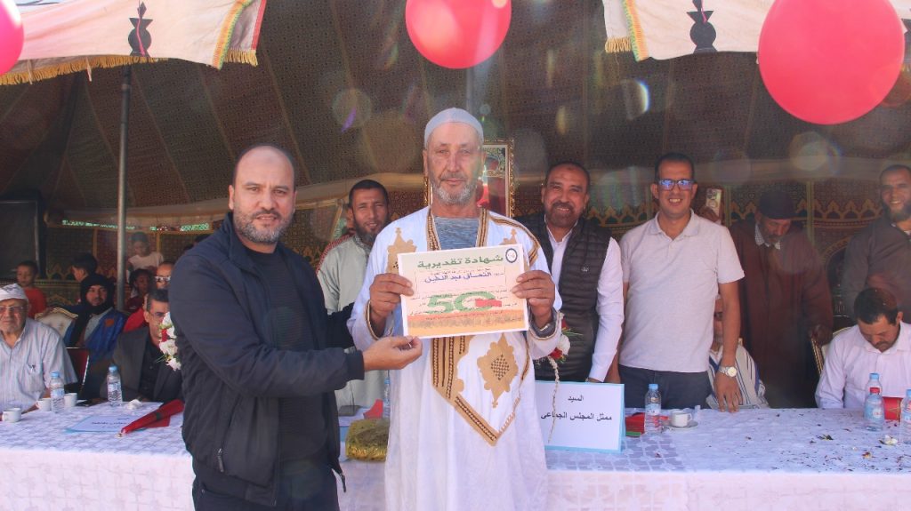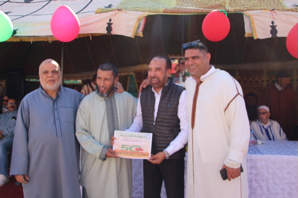 وفي لفتة وفاء وتقدير، شهدت نهاية الحفل فقرة خاصة لـتكريم أشخاص ساهموا في المسيرة الخضراء، عرفانًا بتضحياتهم في سبيل الوطن. كما تم تكريم شخصيات أخرى ساهمت في تنمية سوق أزلي، ربطاً بين الروح الوطنية الداعمة للتنمية الشاملة والجهود المحلية المبذولة للنهوض بالقطاع التجاري.