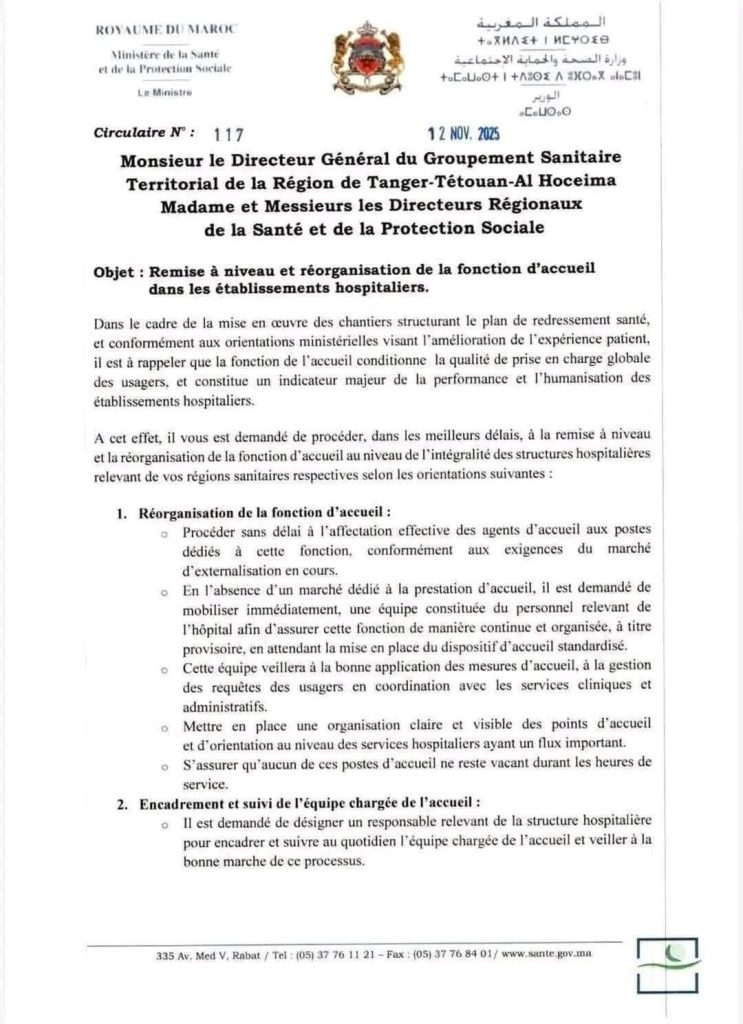 ومن المرتقب أن تساهم هذه الإجراءات في إرساء نموذج أكثر مهنية واحتراماً للمسؤوليات داخل المرافق الصحية، بما يخدم مصلحة المواطن ويعزّز ثقة المرتفقين في المنظومة الصحية العمومية.