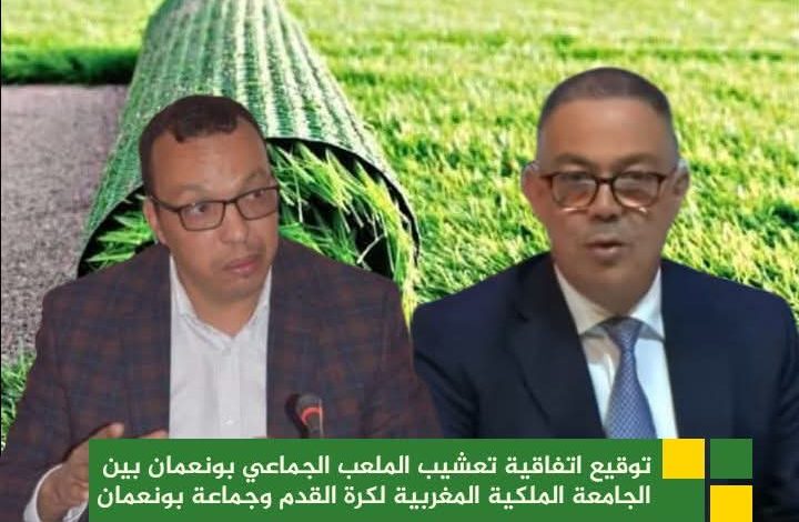 في إطار استراتيجية الجامعة الملكية المغربية لكرة القدم لتطوير البنية التحتية الرياضية، تم توقيع اتفاقية تعشيب ملعب بونعمان من طرف السيد فوزي لقجع، رئيس الجامعة الملكية المغربية لكرة القدم، والسيد رئيس جماعة بونعمان.