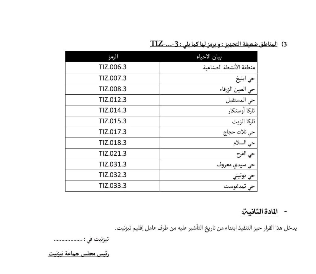 أخطر جزء في الملف يتعلق بتصنيف أحياء المدينة ضمن: