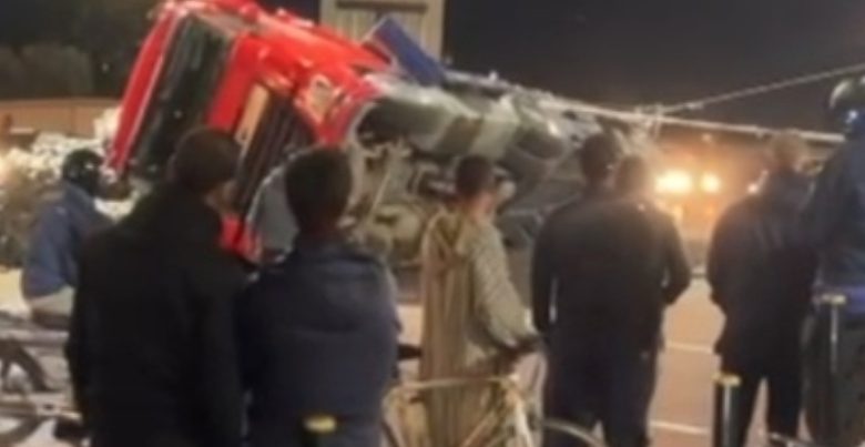 مراكش…انقلاب شاحنة يعرقل حركة السير …