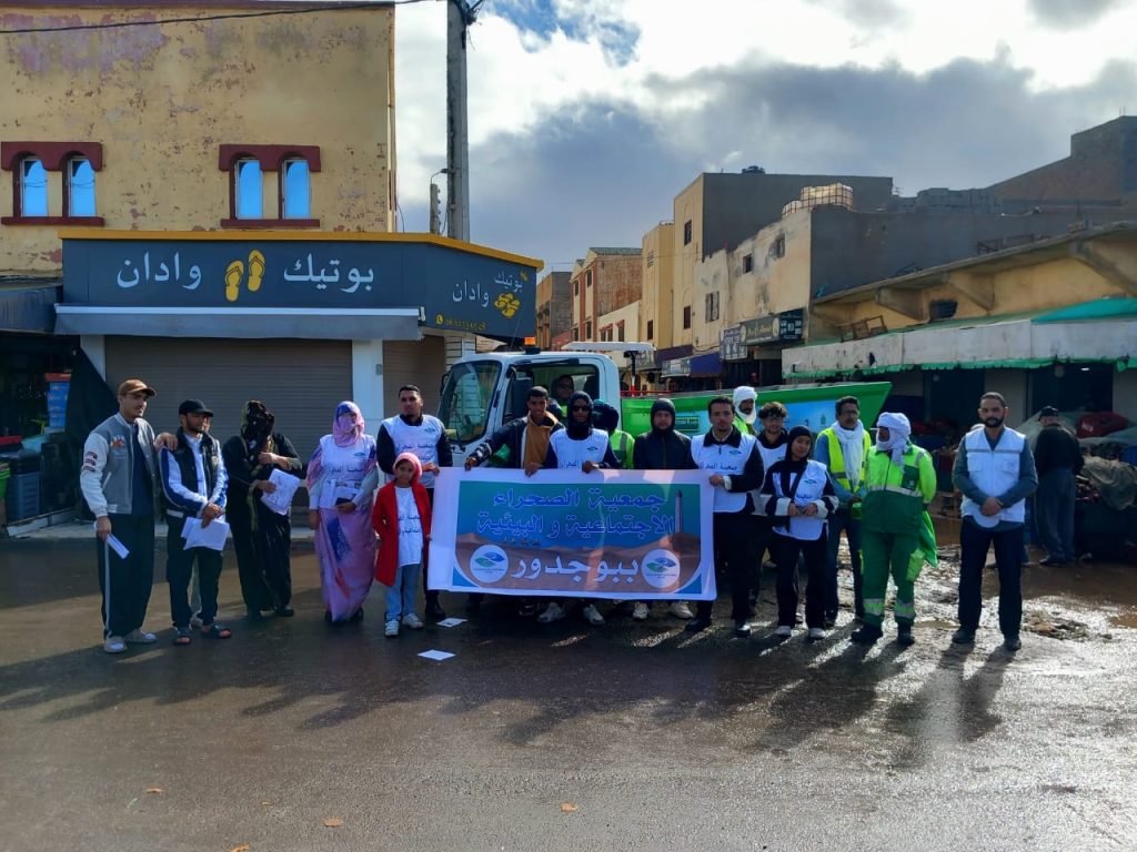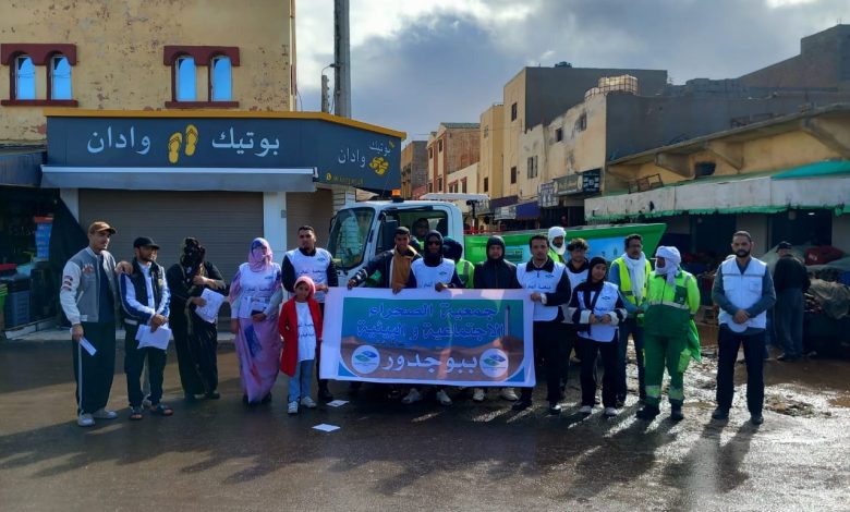 *بوجدور … جمعية الصحراء الاجتماعية تنظم حملة تحسيسية بسوق بوجدور حول النظافة والبيئة*