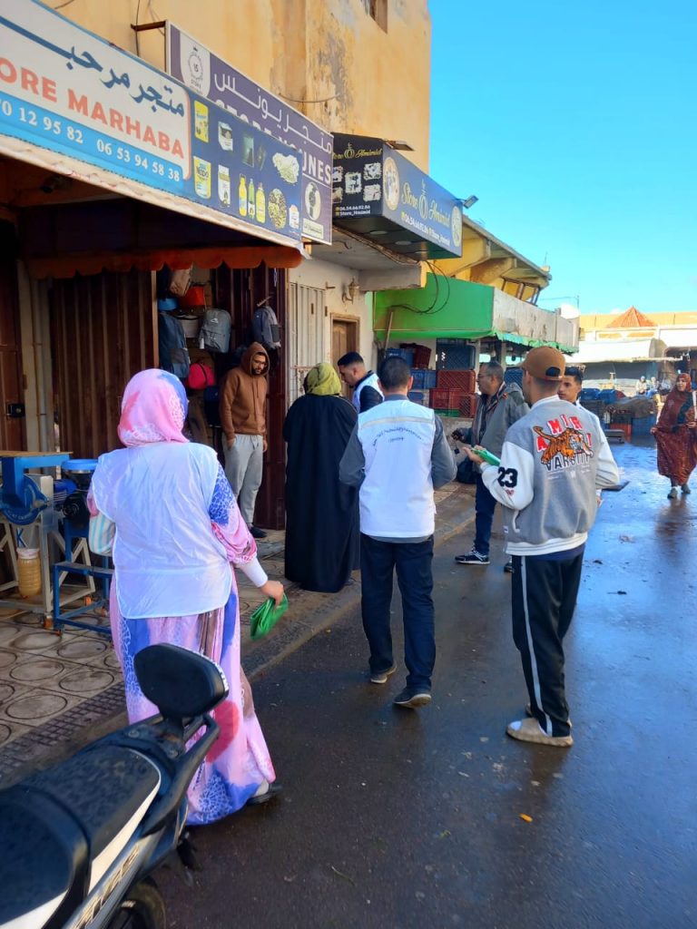 وجاء هذا النشاط بتعاون ومشاركة كلٍّ من شركة النظافة Mecomar ببوجدور، والمندوبية الإقليمية لوزارة الصحة والحماية الاجتماعية ببوجدور، إلى جانب عدد من الفاعلين في المجتمع المدني، حيث تم تقديم إرشادات ميدانية ورسائل توعوية للتجار ومرتادي السوق، مع توزيع مطويات ورقية توعوية وأكياس للنظافة لفائدة التجار والمواطنين.