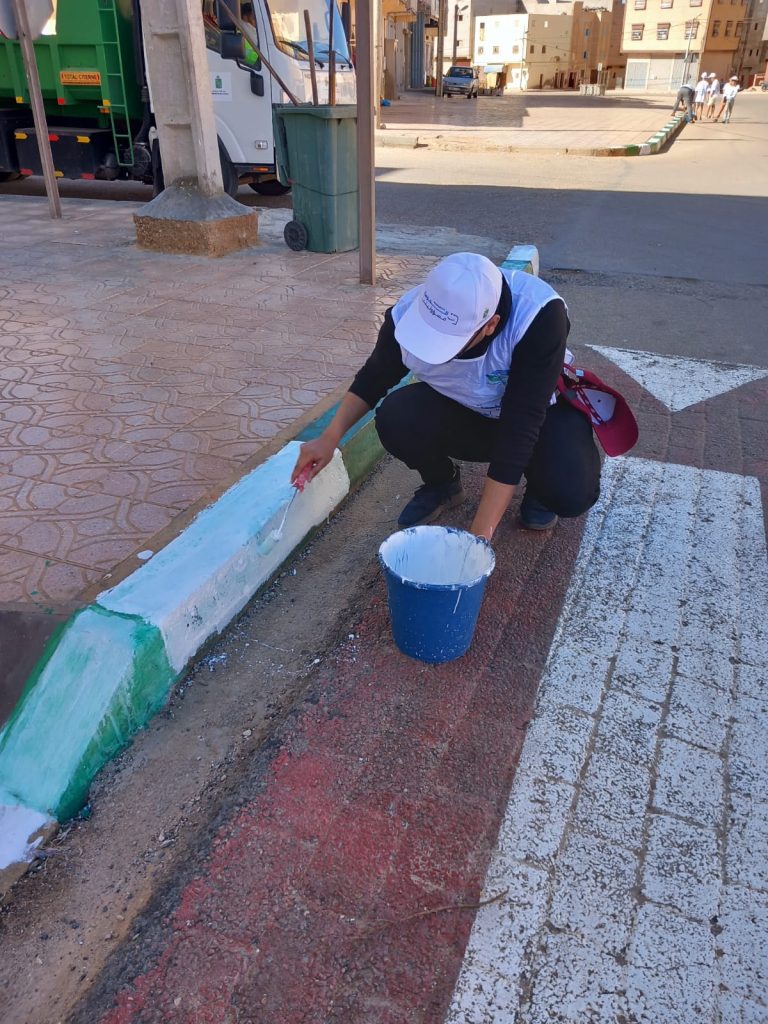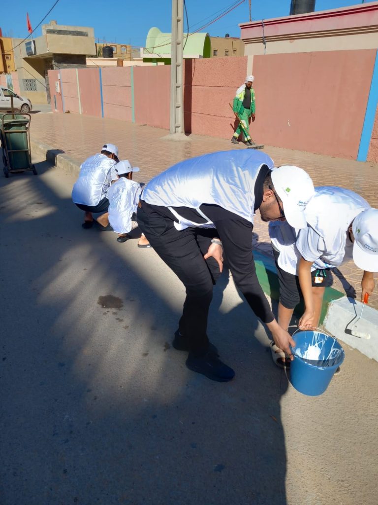 وقد تميّزت هذه الحملة بتنظيم عملي ومحكم، حيث جرى تنفيذ عمليات تنظيف واسعة شملت إزالة المخلفات والنفايات، إلى جانب صباغة الأرصفة وتحسين جمالية الفضاء العام، بما أعاد للمكان رونقه وهيبته، وخلق إحساساً جماعياً بالارتياح والاعتزاز بالحي.