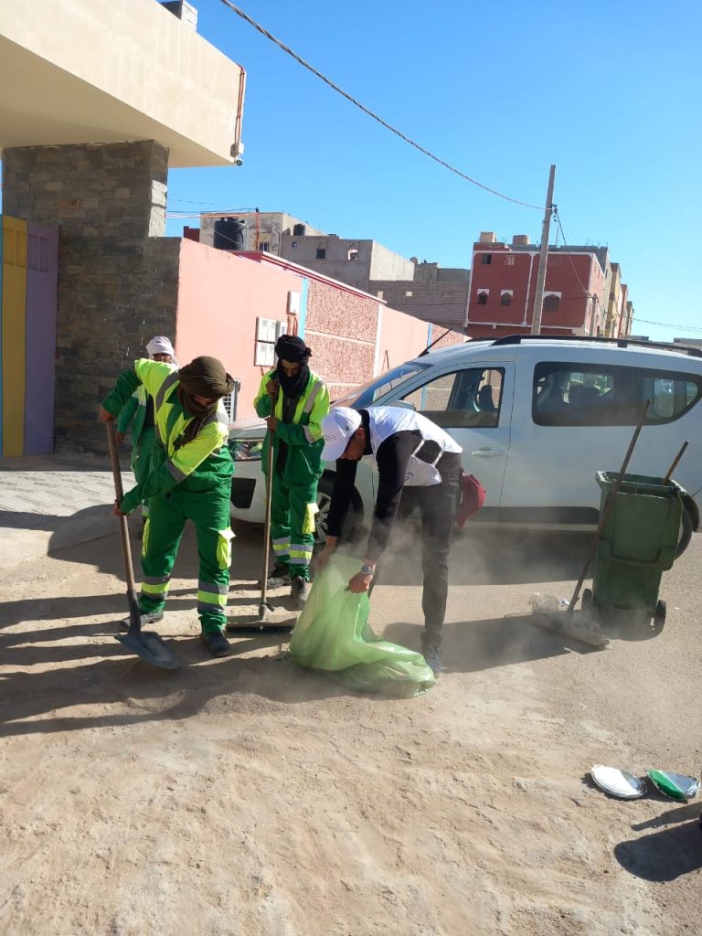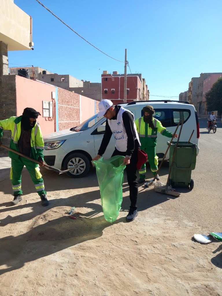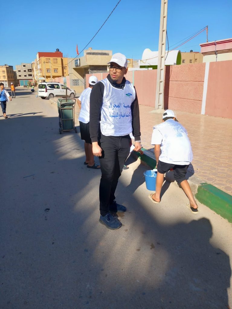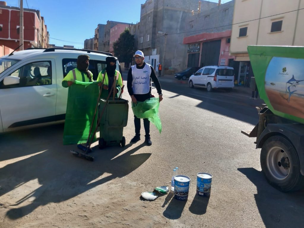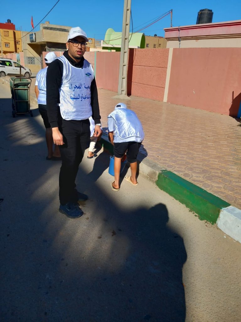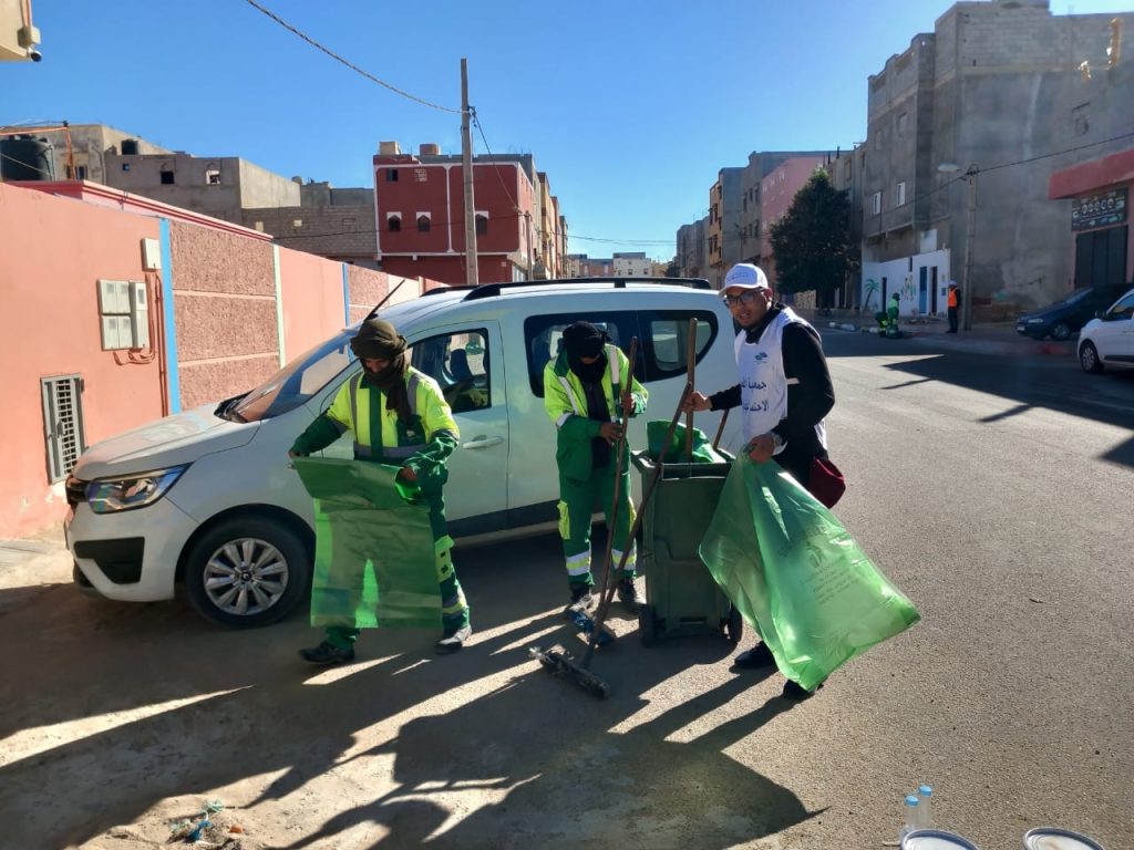 بشراكة مع شركة مكومار (MECOMAR)… جمعية الصحراء الاجتماعية والبيئية تُدخل البهجة إلى الساكنة بحملة نظافة أعادت للحي بريقه 🌿✨
