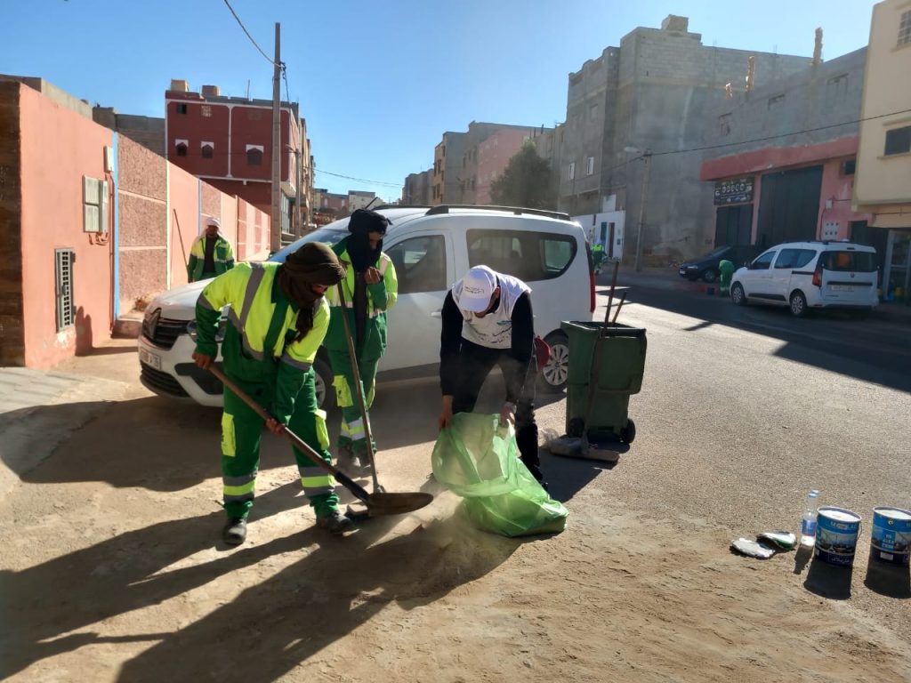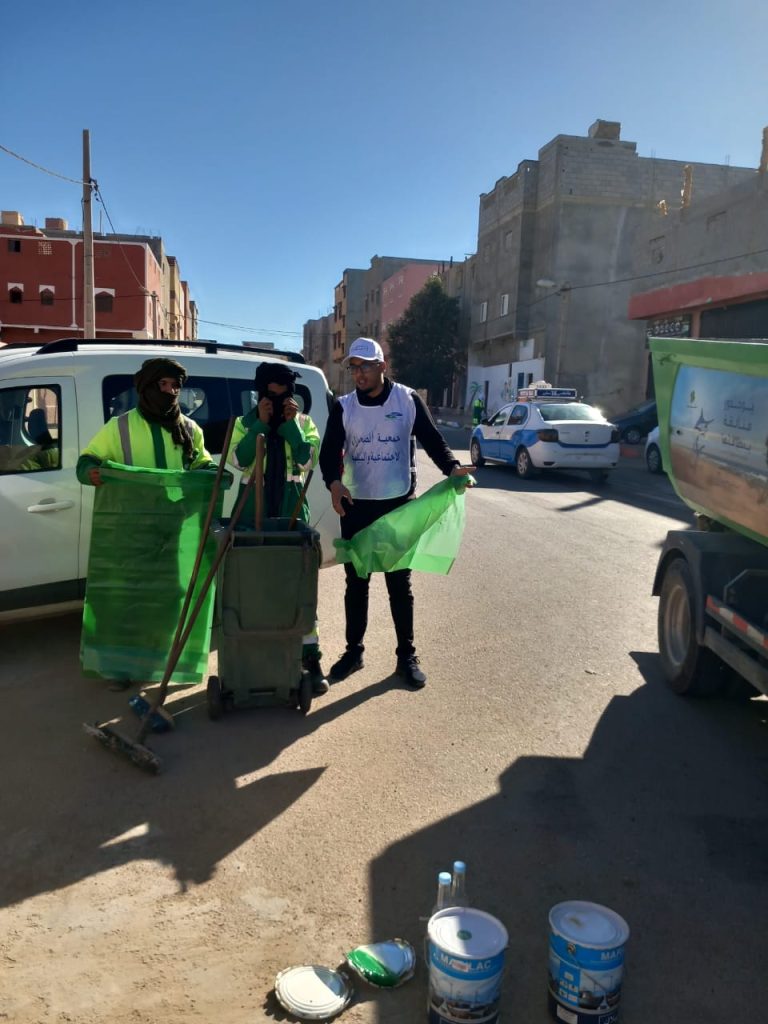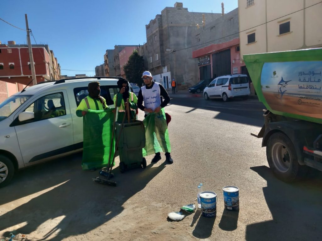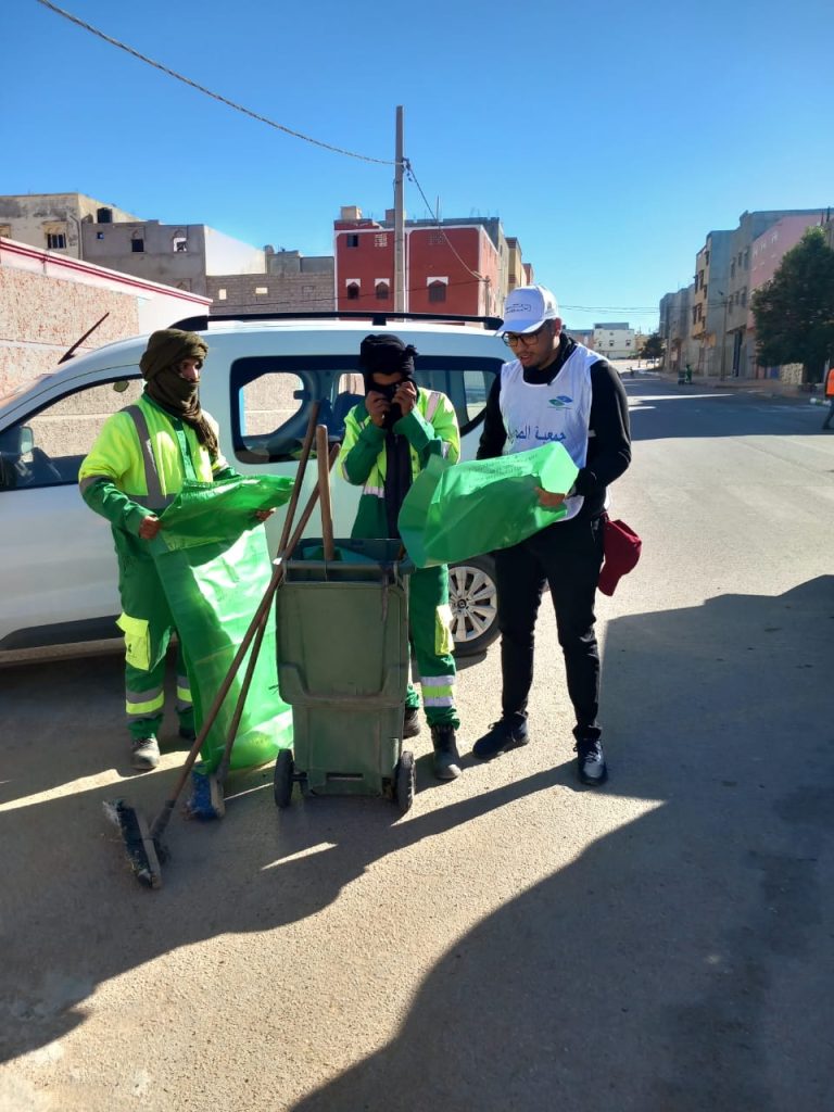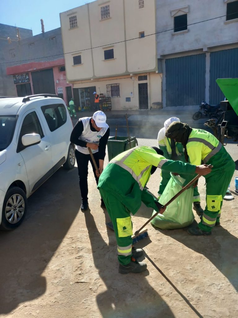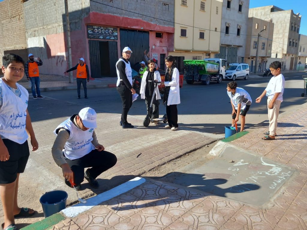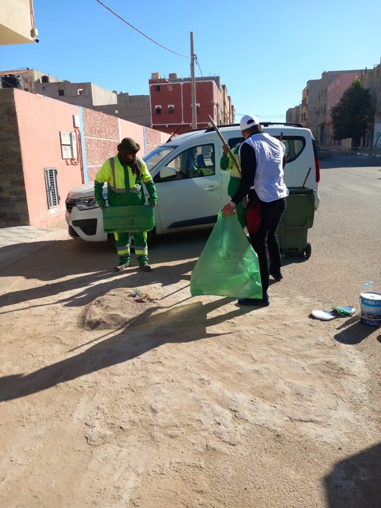 بشراكة مع شركة مكومار (MECOMAR)… جمعية الصحراء الاجتماعية والبيئية تُدخل البهجة إلى الساكنة بحملة نظافة أعادت للحي بريقه 🌿✨