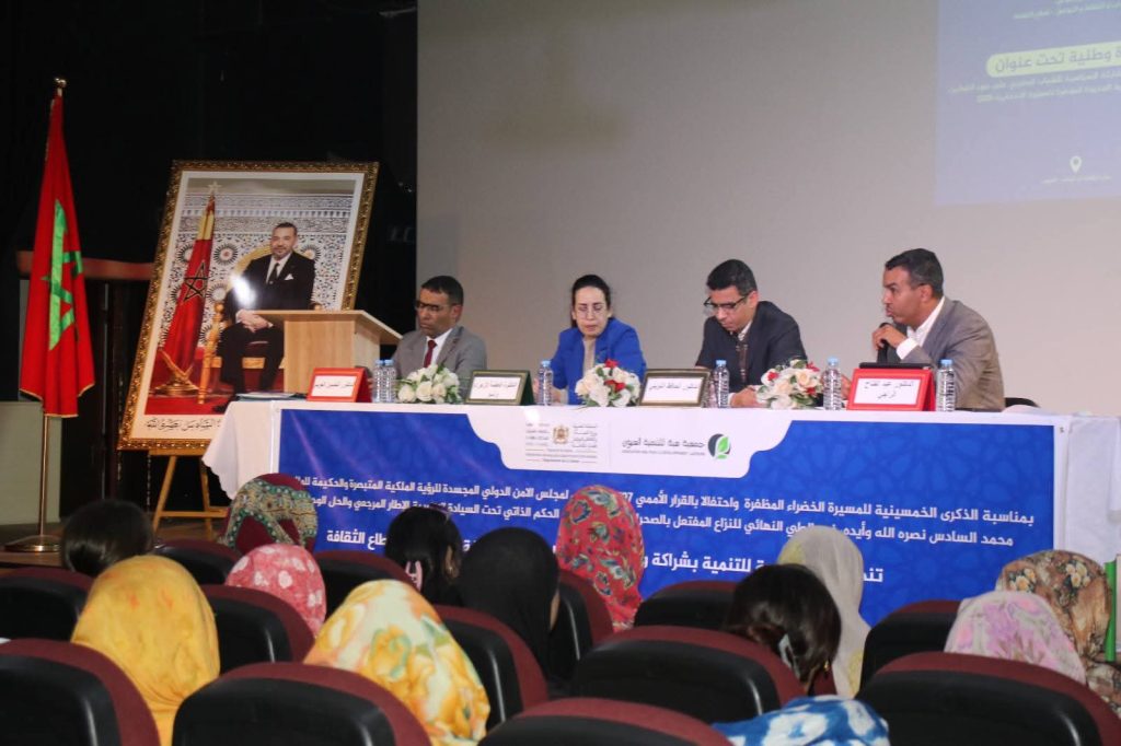 نظمت جمعية هبة للتنمية، بشراكة ودعم من وزارة الشباب والثقافة والتواصل – قطاع الثقافة، ندوة وطنية بمدينة العيون، بمناسبة الذكرى الخمسينية للمسيرة الخضراء المظفرة، واحتفاءً بالقرار الأممي رقم 2797 لمجلس الأمن، الذي يكرّس مبادرة الحكم الذاتي تحت السيادة المغربية كحل وحيد للنزاع المفتعل حول الصحراء المغربية.