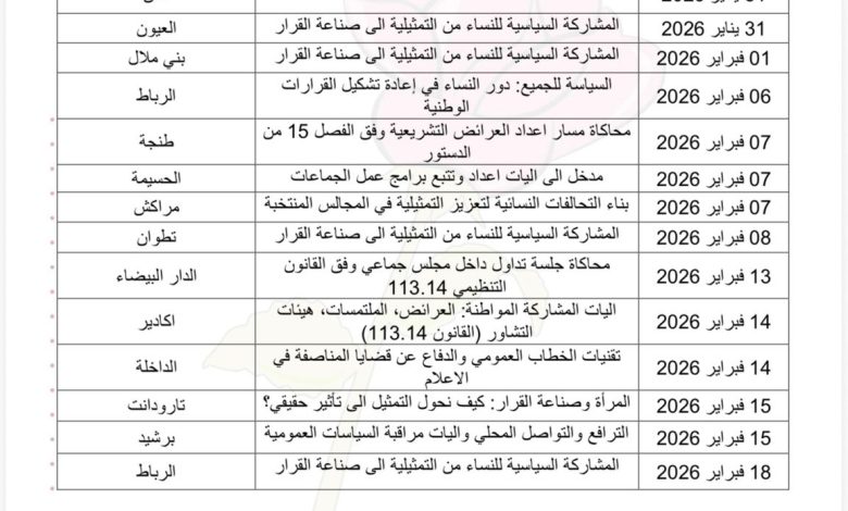 وأضافت رحاب حنان أن البرنامج «يراهن على تكوين نوعي ومندمج، يربط بين المعرفة القانونية والمؤسساتية والممارسة الميدانية، ويستحضر خصوصيات السياقات الترابية وتنوع الفئات النسائية المستهدفة»، معتبرة أن «تمكين النساء سياسيا يشكل مدخلا أساسيا لتعزيز الديمقراطية وتحقيق التنمية والعدالة الاجتماعية».
