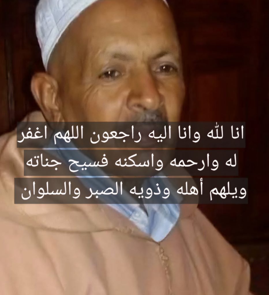 وبهذه المناسبة الأليمة، تتقدم جريدة الوطن بريس الإلكترونية بأحر التعازي وأصدق عبارات المواساة إلى أسرة الفقيد الصغيرة والكبيرة، وإلى كافة أهله وذويه وأقاربه، سائلين المولى عز وجل أن يتغمده بواسع رحمته، وأن يسكنه فسيح جناته مع النبيين والصديقين والشهداء والصالحين، وحسن أولئك رفيقًا، وأن يلهم أهله وذويه جميل الصبر والسلوان.