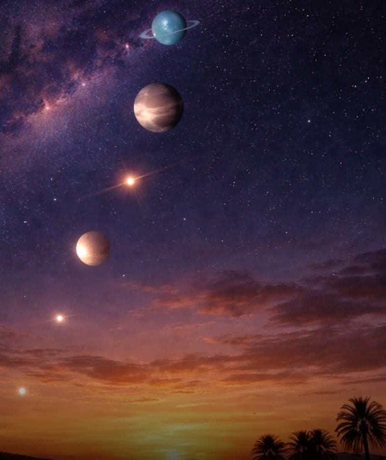 👈عطارد، الزهرة، زحل، المشتري، بالإضافة إلى أورانوس ونبتون👉، في لوحة سماوية تمتد عبر خط الأفق وتصل ذروة جمالها مساء السبت 28 فبراير الجاري ..