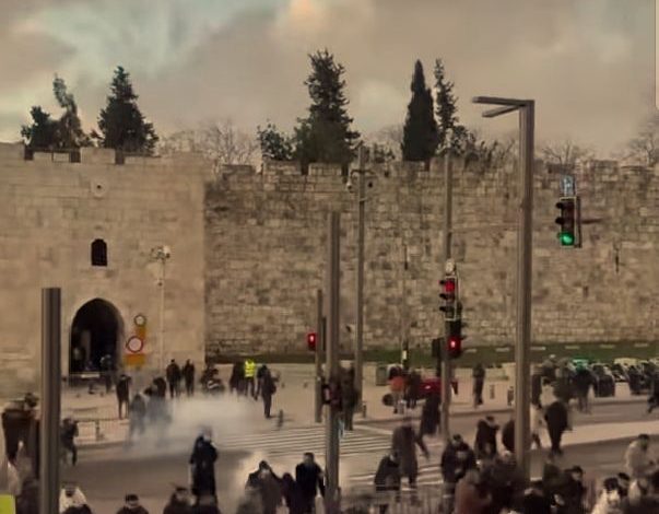 المصلون تجمعوا في منطقة باب العامود لأداء صلاة عيد الفطر، لكنهم تعرضوا لإطلاق نار من قوات الاحتلال.