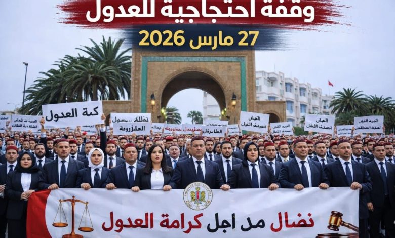 النقابة الوطنية لعدول المغرب، المنضوية تحت لواء الاتحاد العام للشغالين بالمغرب، تعلن عن تنظيم وقفة احتجاجية أمام وزارة العدل يوم الجمعة 27 مارس 2026، ابتداء من الساعة 11.00 صباحا.