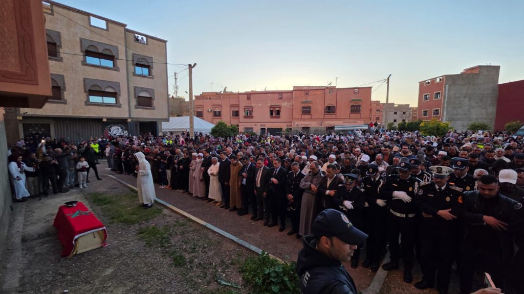 في مشهد جنائزي مهيب طبعته مشاعر الحزن والأسى، ودعت أسرة الأمن الوطني بمدينة خريبكة أحد أبنائها البررة، بعد وفاة الشرطي رشيد رزوق متأثرا بالإصابات الخطيرة التي تعرض لها أثناء تدخل أمني استهدف شبكة لترويج المخدرات بمنطقة بني خيران، ضواحي المدينة.