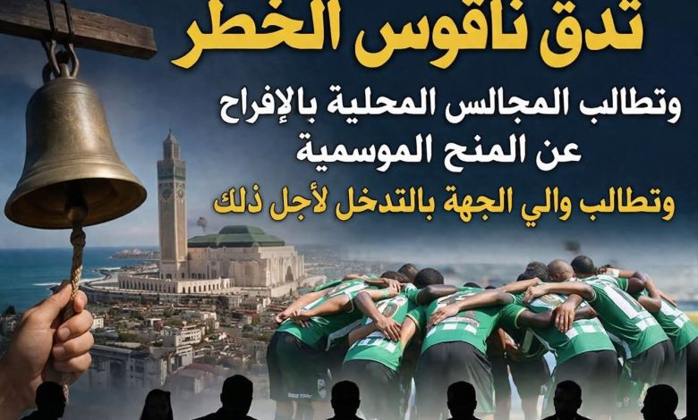 أطلقت أندية كرة القدم و أندية كرة القدم داخل القاعة المنضوية تحت لواء عصبة الدار البيضاء الكبرى ناقوس الخطر بسبب تأخر صرف منح المجالس المحلية،رغم العديد من الوعود في الاشهر والأسابيع الماضية، وهو ما يهدد استمرار أنشطتها الرياضية والتربوية. هذه الأندية التي تؤطر شباب المدينة، تطالب مجلس المدينة ومجلس عمالة الدار البيضاء بالإفراج عن المنح الموسمية فورا، كما وجهت ندائها إلى والي جهة الدار البيضاء سطات بالتدخل العاجل لضمان استمرار الحياة الرياضية بالمدينة….!