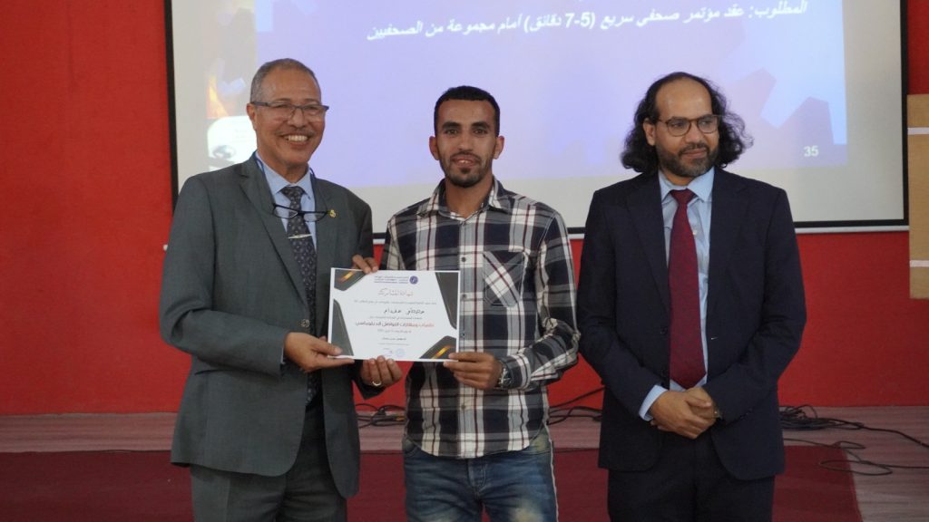 وأطر هذه الورشة الدكتور الشرقي خيطار، الباحث في العلوم السياسية والإعلام، حيث قدم عرضاً شاملاً حول أسس التواصل الدبلوماسي، مبرزاً أهميته في بناء العلاقات المهنية والمؤسساتية، خاصة في ظل التحولات المتسارعة التي يشهدها مجال الاتصال على المستويين الوطني والدولي.