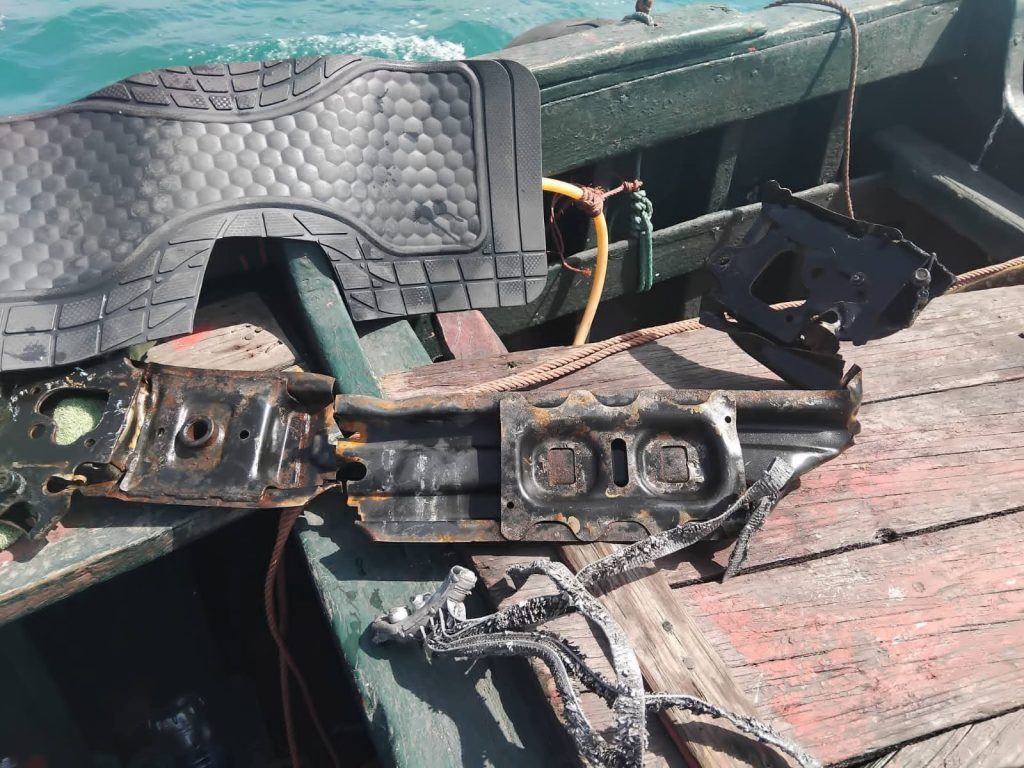 العثور على أجزاء من حطام السيارة من موضع الحادث بالجرف الأصفر .
