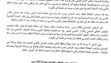 بيان المجلس الجماعي لكلتة زمور بمناسبة صدور القرار الأممي 2797 بشأن قضية الصحراء المغربية